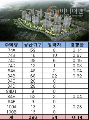 반면 전용면적 84㎡A의 경우 총 48세대 공급에 단 2명이 신청해 다소 저조한 성적인 경쟁률 0.04대 1을 기록하며 마감했다.
