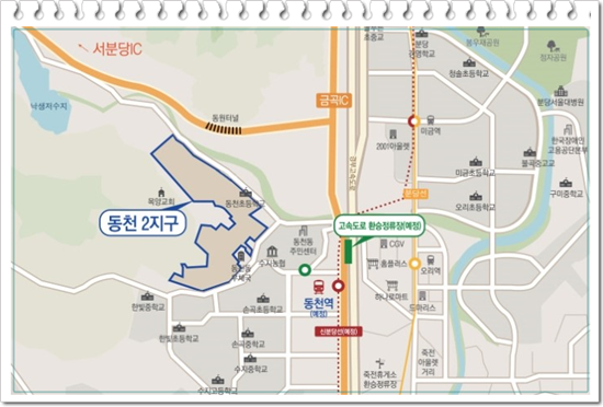 다만 동천역과 단지 거리가 1.1km에 달해 도보로 역을 이용하기에는 무리가 따를 것으로 보인다.