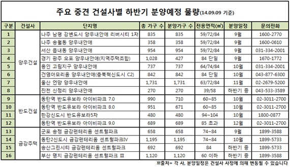 [미디어펜=이승혜 기자] 분양시장 호재를 맞아 대형건설사들의 하반기 공급물량 홍수 속에 중견 건설사들의 선전이 돋보이고 있다.