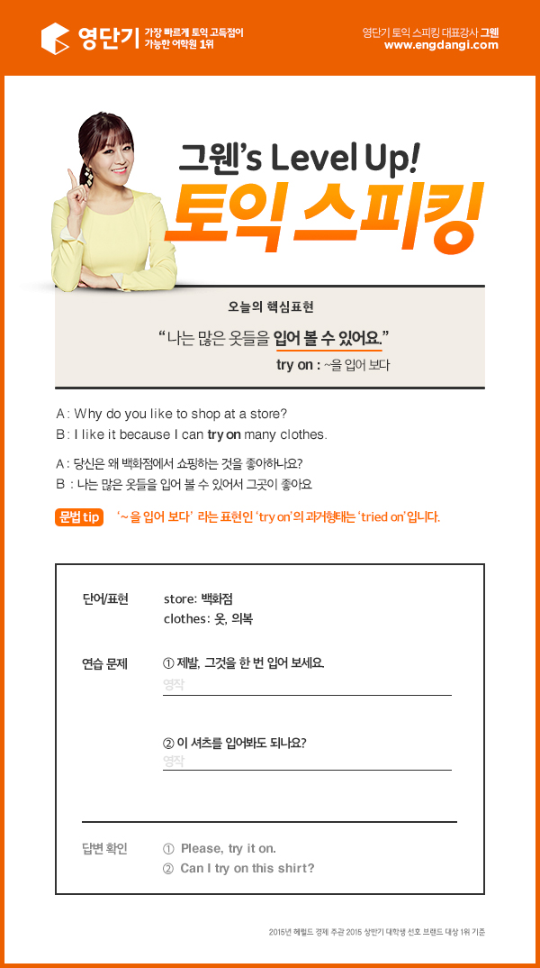 [그웬의 레벨업 토익스피킹] 쇼핑 중 발견한 핫 아이템 "입어 볼 수 있어요?"