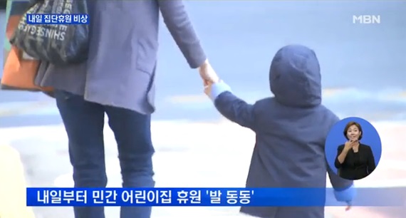 ▲ 한국민간어린이집협회(이하 '한민련')에서 오는 28일부터 연차 투쟁을 예고했다.MBN 뉴스화면 캡처.