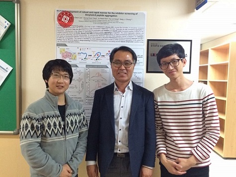 | ▲ (왼쪽부터)동국대 화학과 양승현 학생, 정상전 교수, 이영근 석사과정생. | ||