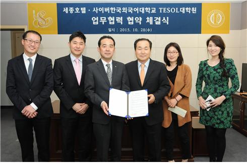 이번 MOU 체결에 따라 사이버한국외대 테솔대학원과 세종호텔은 교육 지원 등을 협력하기로 했다.