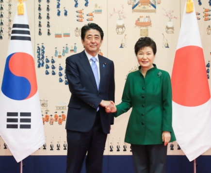 [미디어펜=온라인뉴스팀] 연합뉴스에 따르면, 박근혜 대통령은 지난 2일 청와대에서 아베 신조(安倍晋三) 총리와 취임 이후 첫 회담을 열어 최대 현안인 일본군 위안부 문제의 조기 타결을 위한 양국 간 협의를 가속하기로 의견을 모았다.