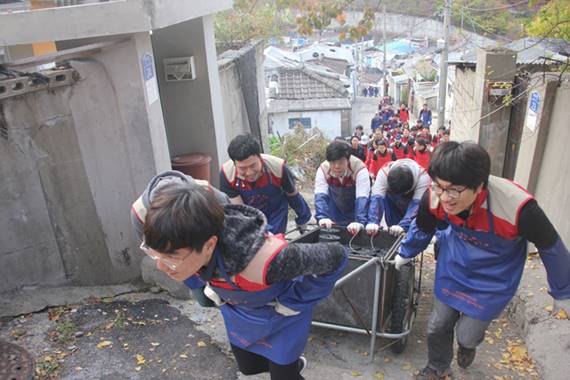 앞서 지난 10일에도 부산 소재의 롯데건설 임직원 30여명이 부산 동구 범일동 ‘매축지마을’을 찾아 연탄 2만 장을 기부하고 26가구에 연탄을 전했다.
