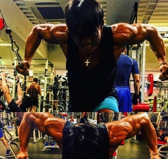 공개된 사진 속 추성훈은 민소매 차림으로 몸 만들기에 열중하고 있는 모습. 특히 추성훈은 구릿빛 피부에 놀라운 등 근육을 자랑해 놀라움을 자아낸다.