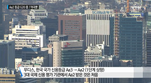 과 공공률이 가운데 국제 신용평가기관인 무디스가 한국의 신용등급을 한 단계 상향조정했다.