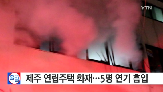 | ▲ 제주 연립주택 화재, 5명 연기 흡입 "원인은 전기매트 과열"/YTN 방송 캡처 |