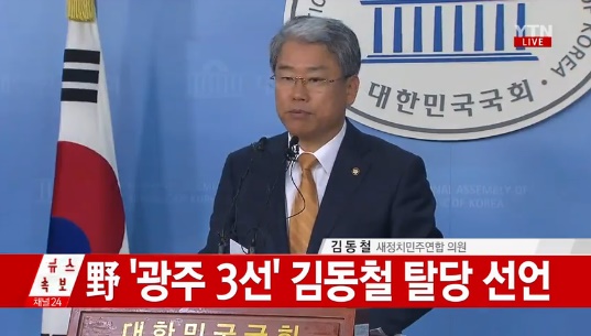 | ▲ 광주 출신 3선인 김동철 새정치민주연합 의원은 20일 국회 정론관에서 기자회견을 갖고 탈당을 선언, 안철수 무소속 의원의 신당 세력에 합류할 뜻을 밝혔다./사진=YTN 뉴스 캡처 |