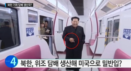 [미디어펜=온라인뉴스팀] 애연가인 북한 김정은 국방위원회 제1위원장이 지하철 객실내에서 담배를 피우다 불붙은 꽁초를 아무 데나 버리는 모습이 포착됐다.