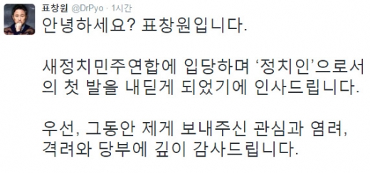 새정치민주연합에 입당하며 ‘정치인’으로서의 첫 발을 내딛게 되었기에 인사드립니다.