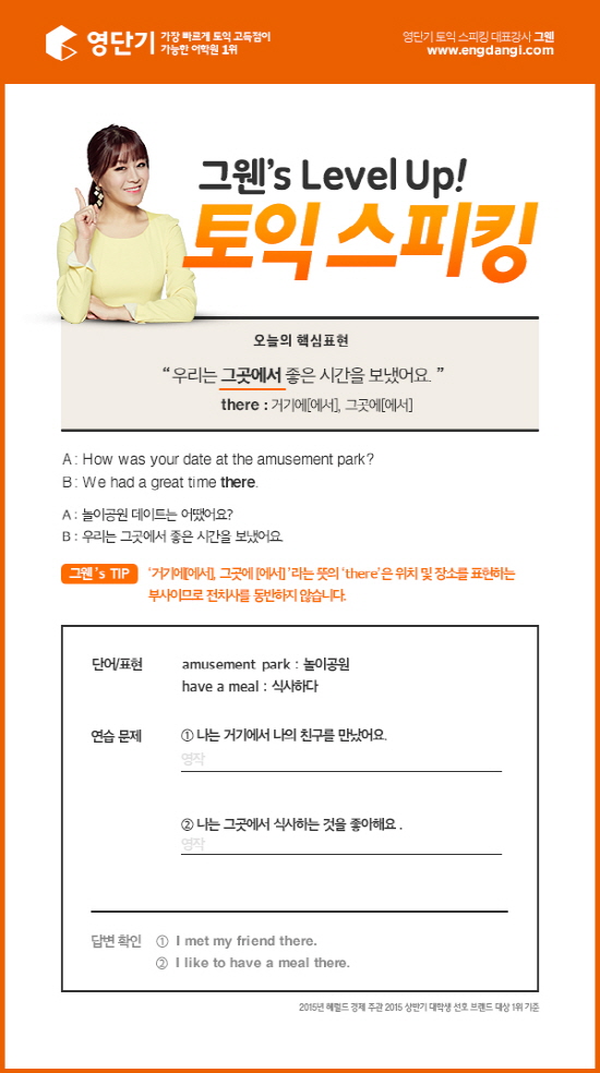 ▲ 그웬의 레벨업 토익스피킹/자료=에스티앤컴퍼니 외국어전문 '영단기'
