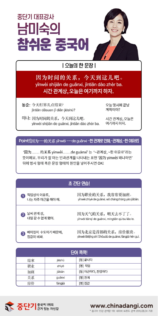 [남미숙의 참 쉬운 중국어]-시간 관계상 오늘은 여기까지 하자