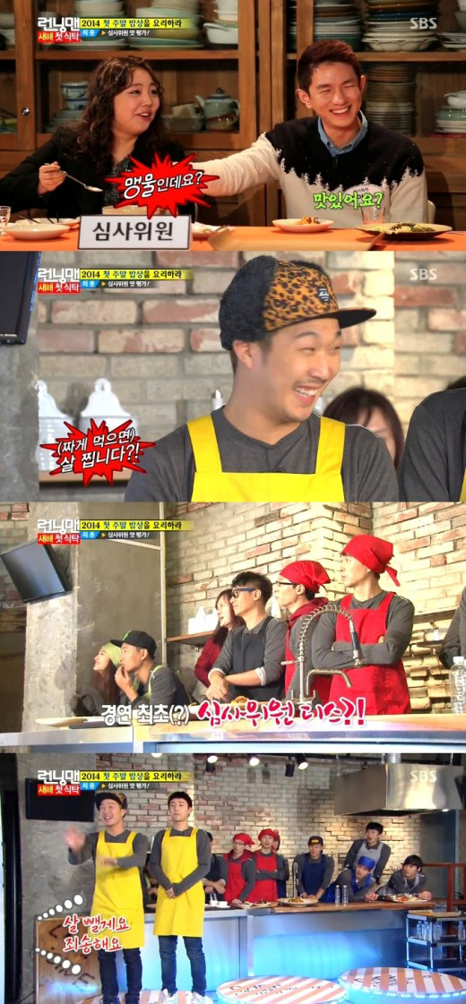 12일 방송된 SBS '일요일이 좋다-런닝맨'(사진)에서는 송경아, 이동욱, 박수홍, 존 박, 김성규, 김재경, 김경호가 출연, 요리 고수의 비법을 전수받아 레이스를 벌이는 '2014 요리배틀'에 나섰다.