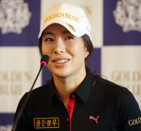 | ▲ 안시현이 13일 프라자호텔에서 열린 골든블루 후원 조인식에서 기자들의 질문에 답하고 있다 | ||