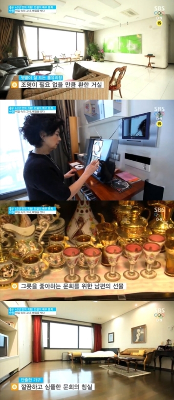 문희는 집안 한켠에 전시된 그릇들을 선보이며 "남편이 내가 그릇을 좋아한다는 걸 알고 유럽이나 외국 나가면 사왔다"고 설명했다.