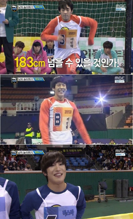이민혁은 30일 오후 방송된 MBC '아이돌스타 육상·양궁·풋살·컬링 선수권대회(이하 아육대)'에서 히스토리 김시형, 백퍼센트 상훈, 빅스타 성학 등과 함께 남자 높이뛰기에서 역대 신기록을 넘어서며 모두를 놀라게 했다.