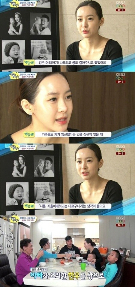 송호범의 아내 백승혜는 30일 오후 방송된 KBS 2TV '엄마를 부탁해'에서 "셋째를 임신하니 내가 임신했다는 사실을 까먹을 때가있다"고 말했다.