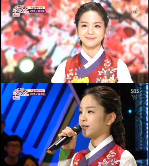 송소희는 이날 MC 전현무, 박은지가 진행한 ‘페이스오프’에서 정중한 인사로 무대를 시작했다. 민족 최대 명절인 설날 그의 미모는 더욱 빛났고 예쁜 외모만큼이나 출중한 실력으로 시선을 끌었다.