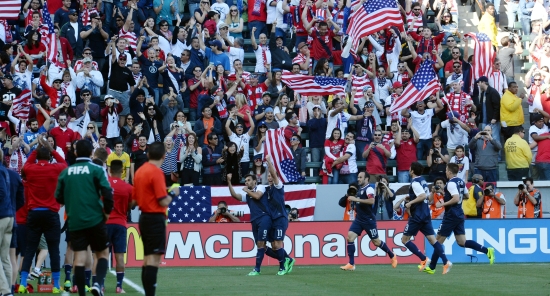| ▲ 2일 새벽(한국시각) 미국 캘리포니아주 카슨의 스텁 허브센터에서 진행된 한국 축구국가대표팀과 미국 축구국가대표팀의 평가전에서 미국 원돌로프스키(9번)이 전반 3분 첫 골을 성공시키고 동료들과 환호하고 있다./뉴시스 | ||
