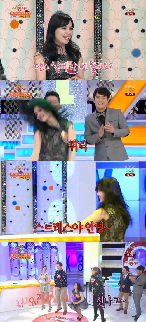이어 굴사남은 음악에 맞춰 격한 댄스를 선보여 박수를 받았다. 그러자 하일, 크리스티나, 따루가 합류해 크레용팝 '빠빠빠' 댄스를 선보였다. 하일은 "난 스트레스 더 받았다"고 호소해 웃음을 자아냈다.