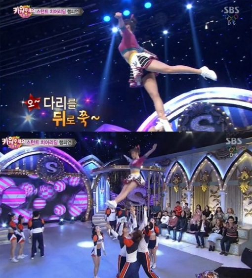 걸 그룹 시크릿 멤버 전효성의 스턴트 치어리딩 장면이 화제다.