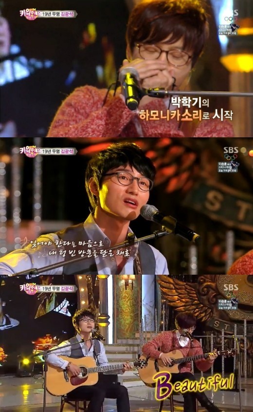 가수 김광석 모창을 한 ‘스타킹’의 이헌승이 애잔한 감동을 불러왔다.