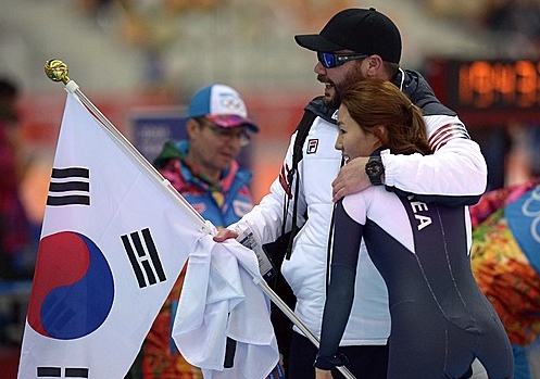 이날 이상화는 금메달이 확정되자 케빈 코치와 뜨거운 포옹으로 기쁨을 나눴다.
