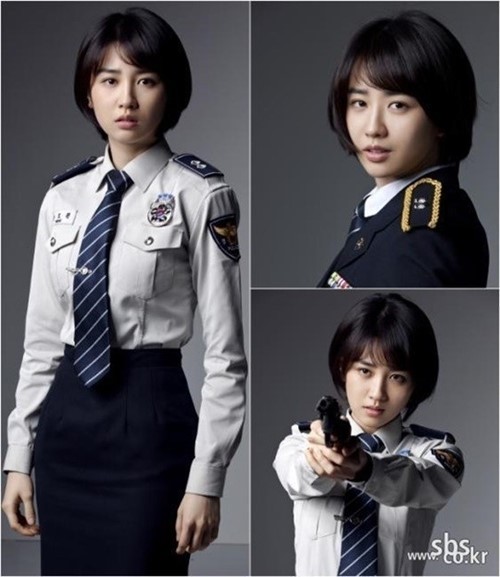 사진 속 박하선은 단정한 단발 머리로 변신한 모습에 경찰 제복을 입고 있다.