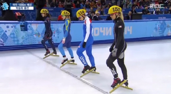 | ▲ 박승희는 18일 러시아 소치의 아이스버그 스케이팅 팰리스에서 열린 2014 소치 동계올림픽 쇼트트랙 여자 1,000m 2조 예선에서 1위로 결승선을 통과했다./MBC 캡쳐 | ||