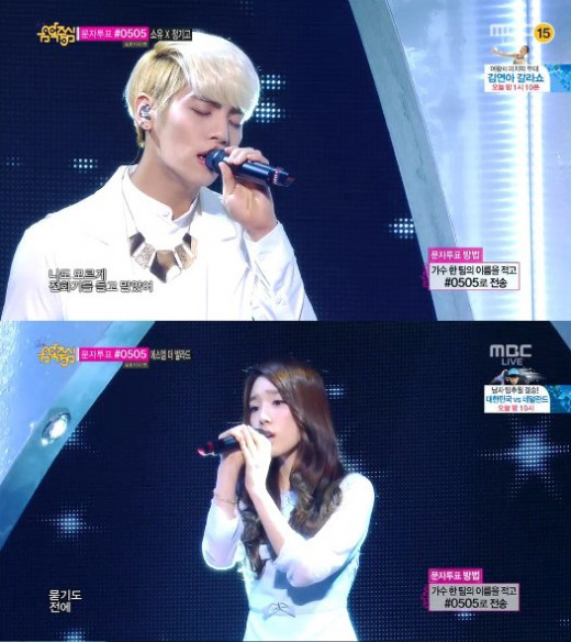 MBC ’쇼 음악중심’에서 SM엔터테인먼트 발라드 프로젝트 SM 더 발라드의 소녀시대 태연, 샤이니 종현이 하모니를 이뤘다.