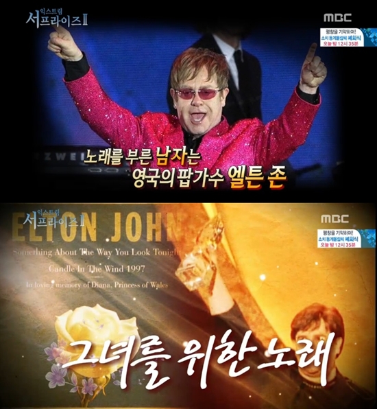 23일 오전 방송된 MBC '신비한TV 서프라이즈'에서는 다이애나 스펜서 영국 왕세자비의 장례식장에서 'Candle in the world'를 부른 엘튼 존의 모습이 방영됐다.