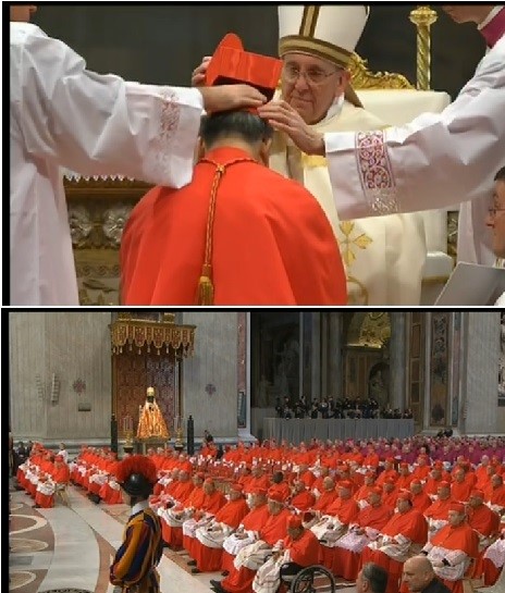 프란치스코 교황은 신임 추기경들의 임명장을 낭독하며 “안드레아 염수정 아르키에피스코포(대주교) 디 서울”이라며 염수정 추기경에게 모자를 씌워줬다.