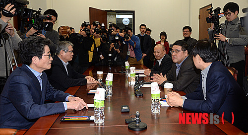 앞서 새누리당 윤상현 원내수석부대표는 기자회견을 통해 "만약 오늘 여야정협의체에서도 도저히 입장차를 좁히지 못한다면 2월 임시국회 처리를 위해 여야 원내지도부가 내일쯤 다시 만나야 하지 않겠나 하는 생각을 가지고 있다"고 밝혔다.