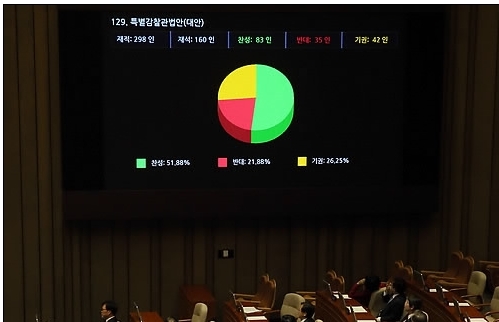 | ▲ 상설특검법안과 특별감찰관법안이 28일 국회 본회의를 통과했다. | ||