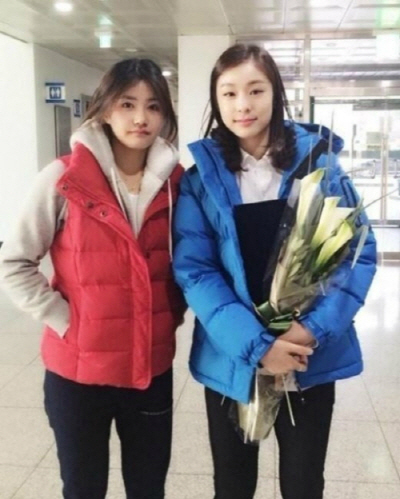 사진 속에는 꽃다발을 든 김연아 선수와 두 손을 패딩점퍼 주머니에 넣은 채 시크한 표정을 짓고 있는 안근영 선수의 모습이 담겨 있다.