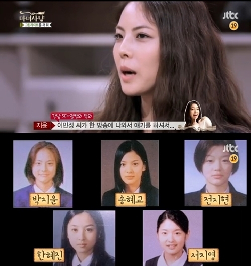 이어 공개된 자료 화면에는 박지윤과 함께 배우 송혜교, 전지현, 한혜진, 가수 서지영의 고교 졸업 사진이 공개돼 눈길을 끌었다.
