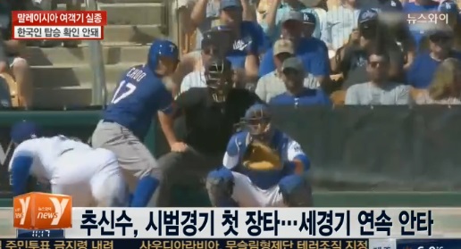 추신수는 1회 첫 타석에서 다저스 선발 잭 리를 상대로 우중간 펜스 상단을 맞히는 2루타를 터뜨렸다. 시범경기 들어 나온 첫 장타였다. 그러나 후속 타선의 불발로 득점에는 실패했다.
