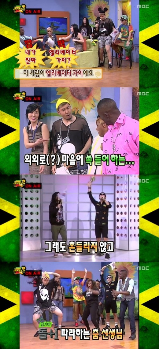 멤버들은 노홍철의 패션쇼 타임, 스컬과 하하하의 라이브 타임, 댄스 타임 등 다채로운 코너에 출연해 자메이카 현지 스태프를 폭소케 했다.