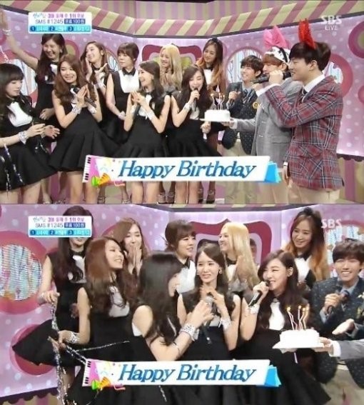소녀시대는 9일 방송된 SBS ‘인기가요’에 출연해 컴백 무대를 갖고 인터뷰 중 태연의 깜짝 생일 파티를 펼쳤다.