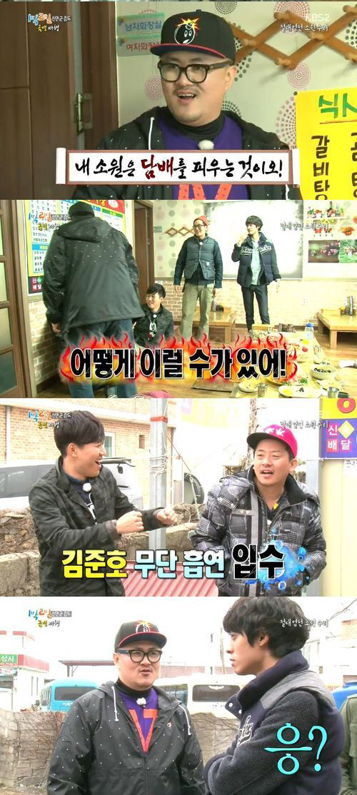 9일 방송된 KBS2 예능프로그램 '해피선데이-1박2일'(1박2일)에서는 '금연의 섬' 증도로 떠난 '금연여행' 1편이 방영됐다.