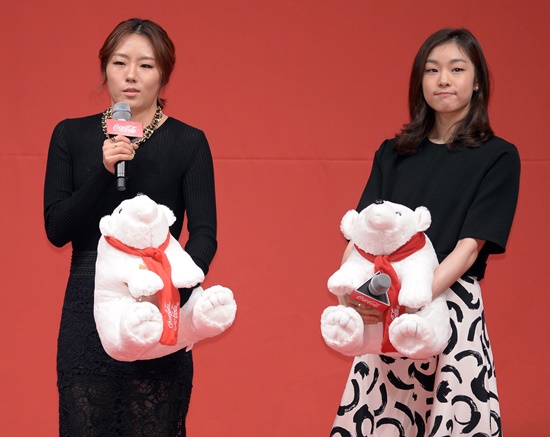 빙상계의 두 ‘여신’ 이상화와 김연아는 12일 서울 중구 소공동의 웨스틴조선호텔 그랜드볼룸에서 열린 제19회 코카콜라체육대상에 참석해 최우수선수상을 공동 수상했다.