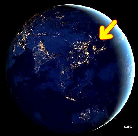 하지만 중국의 주요 도시와 일본 전지역이 거의 환하게 빛을 내고 있다. 한반도의 경우 남한 지역은 어느 지역 못지 않게 환하지만 북한 지역은 불빛이 없어 거의 완전한 암흑이다.