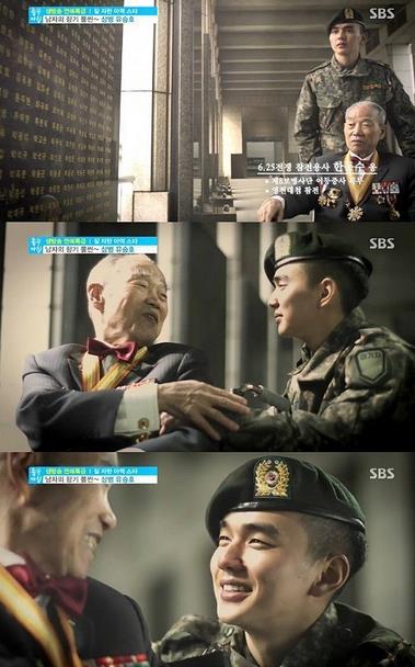 해당 영상에서 유승호는 6.25 참전용사 한동수 옹의 휠체어를 밀고 이야기를 주고 받는 등 한층 남자다워진 군복 차림으로 시청자들을 설레게 했다.