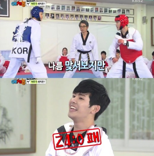 호야는 단 한 번의 공격을 성공시키지 못한 채 11대 연타를 맞았고 결국 24대 0으로 이대훈에 대패했다. 태권도 3단 호야의 굴욕이었다.