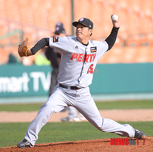 호주 야구대표팀 투수로 마운드에 선 구대성(45‧시드니 블루삭스)의 글러브에 새겨진 태극기가 뜨거운 감동을 주고 있다.