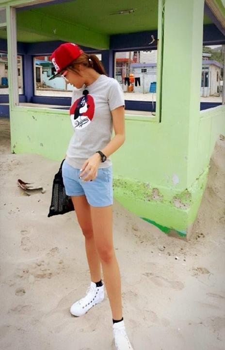 사진 속 이수정은 고개를 젖히고 LA다저스 티셔츠에 핫팬츠를 입었다. 특히 늘씬한 다리를 쭉 뻗으며 각선미를 자랑하고 있다.