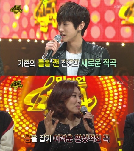 주현미는 "진영의 곡이 유독 어려웠다"며 "음정부터가 난해했다. 뭔가 환상적이다"라고 말했다.진영의 곡이 기존 작곡의 틀을 깬 새로운 유형이라는 것.