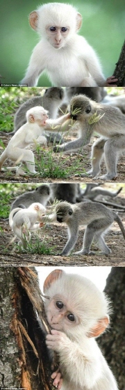 영국 일간지 데일리메일은 26일(현지시간) 최근 남아프리카공화국 크루거국립공원에서 촬영된 새끼 알비노 원숭이의 사진을 공개했다.