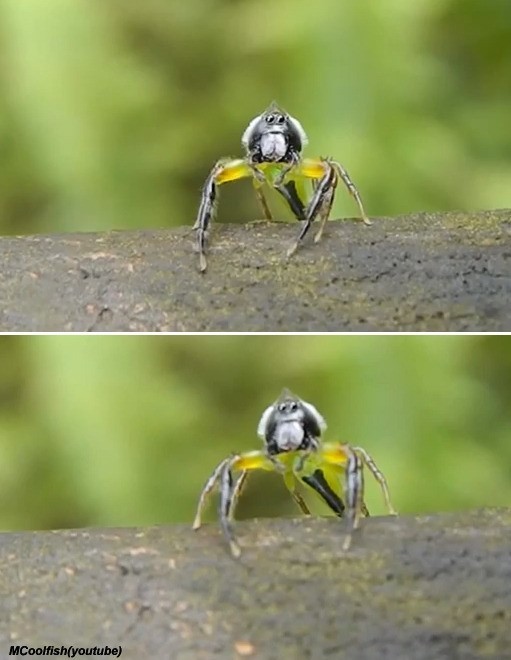 해당 영상은 호주 퀸즐랜드의 한 아마추어 사진작가가 촬영한 것으로 알려졌다. 이 사진작가는 “거미에게 카메라를 가까이 들이대니 깜짝 놀라며 이런 표정을 지었다”고 당시를 회상했다.